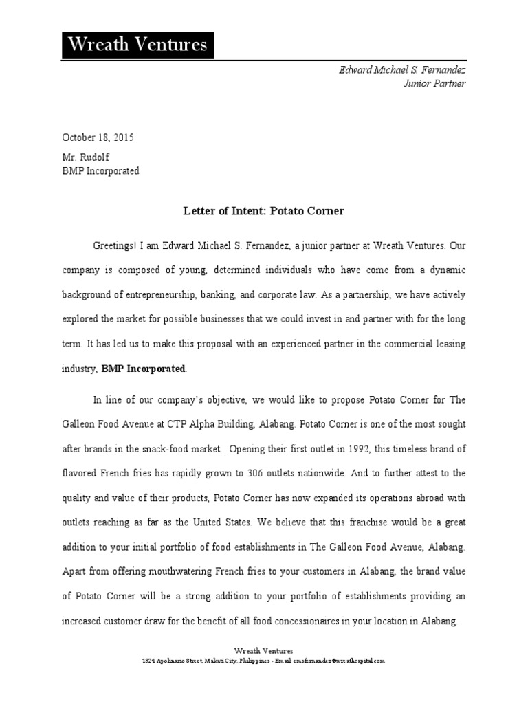 Wreath Ventures Letter Of Intent Potato Corner French Fries Potato Wreath Ventures Letter Of Intent Potato Corner French Fries Potato